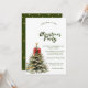Pine Tree Red Bow Stars Green Christmas Invitation