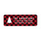 A classic red and black buffalo plaid pattern frames a simple white pine tree silhouette on this festive Christmas return address label. The family name and address appear in clean white caps for a cozy, rustic finishing touch on your holiday mailings. The name and address are easy to personalize.