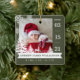 New baby birth stats photo Christmas ornament. The design features two photos, one photo on the front and one on the back. Display your new baby's photo. The date of birth is displayed along the side and the baby's name and birth stats along the bottom. A green background with white snowflakes, pine trees, and deer is added along the bottom of the photo. **Please note you can change the background color by clicking on edit using the design tool. The reverse side features a place to add a second photo. White snowflakes, trees, and deer are added as well. design by Moodthology Papery