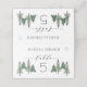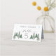 Elegant folded place card with illustration of pine trees in watercolor style. Inside card - falling snowy background. You can use this card for any party - Anniversary, Christmas and New Year celebration, Birthday, Baby Shower or Bridal Shower, Engagement, Rehearsal Dinner party