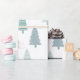 Pine Trees and a White North Pole Polar Bear Happy Holidays. This Forest Polar Bear may be not the forest you are used to but it is Christmas folks so we let him in cause he is just too cute and all about Christmas so why not? He is sweet and makes the most merry company wearing a knitted Christmas sweater. Blue, Aqua, Green and Brown on Ivory Animal and Pine Tree pattern for the Holidays.