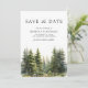 Amaze your guests with this forest theme save the date featuring beautiful pine trees and modern typography with QR code for wedding website. Simply add your event details on this easy-to-use template and adorn this card with your favorite photos to make it a one-of-a-kind save the date card.