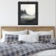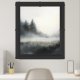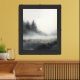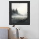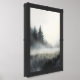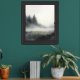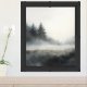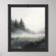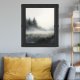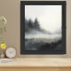 A modern, moody, misty meadow with pine trees and low lying fog. Print from a dry brush watercolor painting. Ethereal, minimalist. Choose your frame style and color.