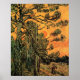 Pine Trees Red Sky Setting Sun by Vincent van Gogh Poster