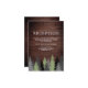 Rustic enclosure card featuring beautiful pine trees with modern typography against a barn wood background.