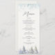 Set an enchanting tone for your reception with this elegant winter wedding menu. Featuring a serene pine forest at the base and delicate snowy details at the top, this design blends rustic charm with seasonal sophistication. A perfect complement for cozy woodland, lodge, or December weddings.