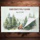 Tearaway Paper Placemats featuring pine wood forest and campfire. Everything is placed on a the white and light green background. Perfect for your next family reunion, birthday or any nature-themed event. Heavy enough to protect your table and add the perfect touch to your party settings. Easily personalize the text. - Kate Eden Art