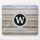 Weathered pine wood look monogram mouse pad. You'll love this rustic yet modern cozy look! White monogram letter in black and gray circles and a background of weathered pine wood slats.
