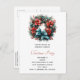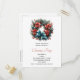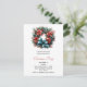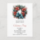Christmas invitation postcard with a pretty Christmas wreath. A festive image with a pine wreath decorated with red flowers, holly and a lovely blue bow. Delightful.