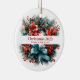 Pine Wreath with Red Flowers and Holly Ceramic Ornament