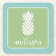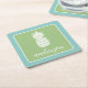 Pineapple and Whimsical green teal - script name Square Paper Coaster