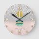 Pineapple Green Glitter Silver Glitter Bokeh Round Clock