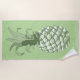 This trendy beach towel design is a monochromatic pineapple graphic in shades of sage green on the background color of your choice. Add your name to personalize using the provided template. Search ID239 to see other products with this design.