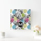 Pineapple Grunge Palms | Monogram Square Wall Clock