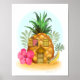 A fairy tale vacation home planted on the island sands adorned with a bright, pink, hibiscus and a banana hammock. Original illustration by Noël Snow.