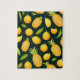 Cute Yellow Lemons, Tropical Fruits And Pineapple Pattern Puzzle With Green Leaves,