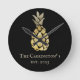 Pineapple Name Watercolor Stencil Round Clock