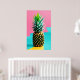 A succulent pineapple takes center stage against a retro backdrop of pink, blue, and yellow, its golden texture echoing the vibrant hues of the vintage palette. The tropical fruit, with its prickly exterior and sweet promise, becomes a visual symphony of nostalgia and freshness.