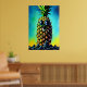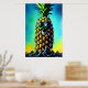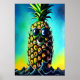A portrait of a pineapple with large eyes and a creepy smile. This is a AI generated art.