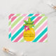 A pretty proposal card, featuring a tropical theme, this "Will you be my Matron of Honor?" invitation to as someone to be a matron of honor for your wedding. Featuring a pink, green and blue striped background, with a bright yellow pineapple front and center "Will you be my matron of Honor" is personalized within. The back has the same diagonal striped design as the front. Personalize yours today!