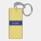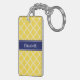 Pineapple Wht Fancy Quatrefoil Navy Name Monogram Keychain