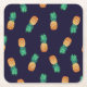 Pineapples On Navy Square Paper Coaster