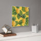 Pineapples & Tropical Leaves On Gold Square Wall Clock