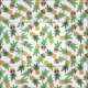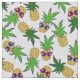 Perfect for summertime, this colorful fabric features graphic artwork of pineapples wearing retro sunglasses with the sun reflected in their purple lenses.