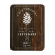 An elegant rustic wedding save the date magnet featuring an illustration of a white pinecone over a barnwood inspired background. Personalize the text with details of your occasion. Look for matching wedding invitations and other coordinating items at Jill's Paperie.