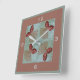 This decorative Square Wall Clock features metallic copper ponderosa pinecones on a textured green background. This design is based on Craftsman tiles designed for use in Craftsman Bungalow homes. Hang this clock in your Bungalow, lodge or Cabin.