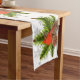 This lovely nature and wildlife table runner will compliment a red and green theme Christmas home. This kitchen and dining table design features an evergreen tree branch with pinecones with an illustrated cardinal bird overlay and backdrop of snowflakes. Use throughout the Christmas season for added color and interest to your home decorations. Buy as shown or make your own this table runner is customizable.
