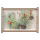 Vintage winter holiday serving tray featuring pines and flower. Personalize it with your holidays message