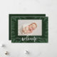 Introduce your newborn with these simple birth announcements featuring a border of pine boughs and dots on a dark green background plus your baby's details in chic lettering on the back. *ADD more photos or more details on the back with the CUSTOMIZE further link. *VERTICAL card done for you in our store. Select Matte for heaviest paper and High Definition for best photo quality.
