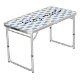 Not that I've had experience to buy that many beer pong or ping pong tables in my life, but I know a good quality product when I see it! This beer pong table is sturdy and solid and still lightweight enough to be portable. It folds and unfolds smoothly for easy storage or setup. From order to arrival here, the time was half of what was estimated, and that was during the holiday season. And -- most importantly -- the recipient LOVED it! I would definitely purchase this product again or other products by the maker Hampton Technologies , should an occasion to do so arise. The printing is beautiful! The blues and reds are deep and rich and the white "chalk look" is clean and crisp,. The photo (taken in low light) doesn't really do it justice. We know it's printed, but take a step back, and it really does look like chalk on a blackboard. To get the blue background like we did (instead of the traditional green chalkboard background), use background color #26306A. :)