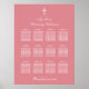 Pink 12 Table Christening Seating Chart Poster, a pretty seating chart poster featuring a white cross and elegant white text on a lovely blush pink background. Please personalize the name of the person being christened and the names of the guests along with any of the other text that you may wish to personalize, using the online personalization template before ordering.