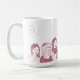 White 15 oz mug with pink characters.