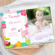 Yes, you can print on the back of your invitation for free! Most designs already have a corresponding design on the back that can be personalized using the Design Tool and going to Layers. This is a great way to communicate more information or further personalize your Pink 1st Birthday Flamingo Invitations With Photo. The option is really up to you.