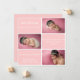 Pink 3 Photo Birth Announcement. Background color can be changed by clicking customize, edit, background.