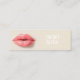 Unique peaches and cream slim business cards. These stylish and fashion-forward business cards feature peachy pink 3D lips against a cream colored backgound. The complimentary dark sage color is used for the font at the back. The design is striking and memorable and sure to make a lasting impression. The design is resonates with a modern minimalist in the creative industry. Variations of this design is available in other color combinations.