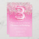 Pink 3rd Birthday Invitation Girly Pink Glitter