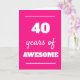Modern pink 40 years of awesome card for her 40th birthday, which you can easily personalize the inside card message if wanted.