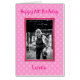 Send special birthday greetings with this cute feminine pink extra-large photo 70th birthday greeting card featuring a gold-framed customizable image with the birthday girl’s name at the bottom front of the card. The image, name, and text within the card are fully customizable. For best fit use a photo that has been pre-cropped to a 6 x 4 aspect ratio.