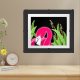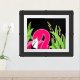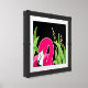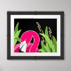 Modern decorative bird art of a pink flamingo with green foliage on a black background