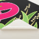 Stylized pink flamingo animal art on a black background with green decorative accents