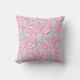 Boho pillow featuring hand drawn illustration of pink and grey mid century modern style flowers.