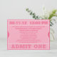 Pink Admit One Ticket Invitation Birthday Party