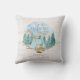 "Blue Adventure Begin Rustic Birth Stats Baby Boy or Gender Neutrall Throw Pillow." Dusty blue tent with a white, hand painted watercolor rustic wood background for a modern touch. Sweet pine forest is filled with woodland animals including an owl, deer, bear, raccoon and hedgehog. The message, "Let the adventure begin" in gray, textured typography and is combined with your baby boy's name, date, time, weight and length personalized. All artwork was painted in watercolor by internationally licensed artist and designer, Audrey Jeanne Roberts, copyright