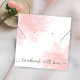 Feminine Jewelry Display Card with elegant script font and pink watercolor background. This jewellery holder card design has two earring hole placeholders and necklace slits - please note these are markers only and are not pre-punched, you can keep / remove the markers that you need.