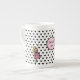 Add a bit of Alice in Wonderland whimsy with this heart-centered design. The background has tiny black hearts, and then Alice in pink is reaching upward on both sides of the cup. In the middle, in a pink circle, are the words "Drink Me." The text is editable if needed, as long as it fits the space. For example, you could include your or your recipient's initials instead.