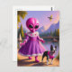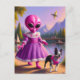 Pink Alien Walking Her Boston Terrier at Lake Postcard